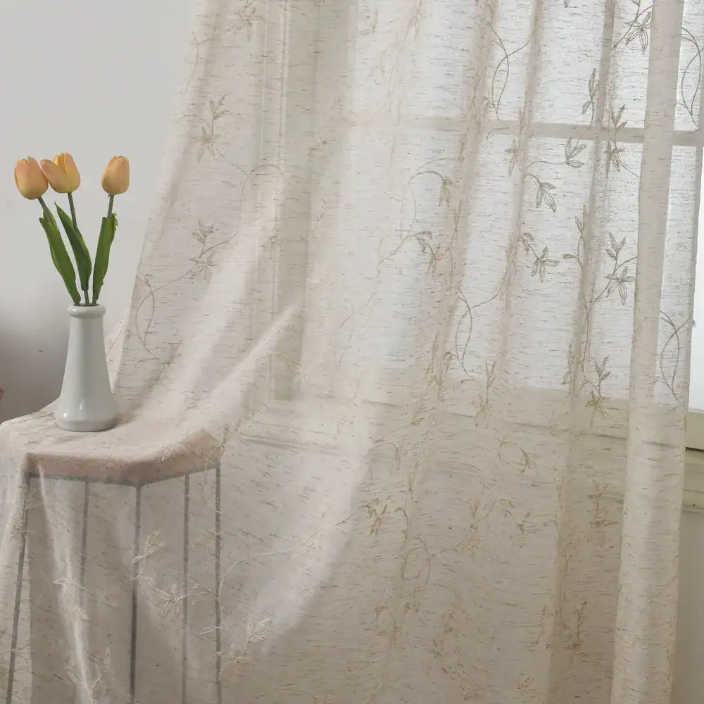 בד דמוי פשתן עם רקמה .