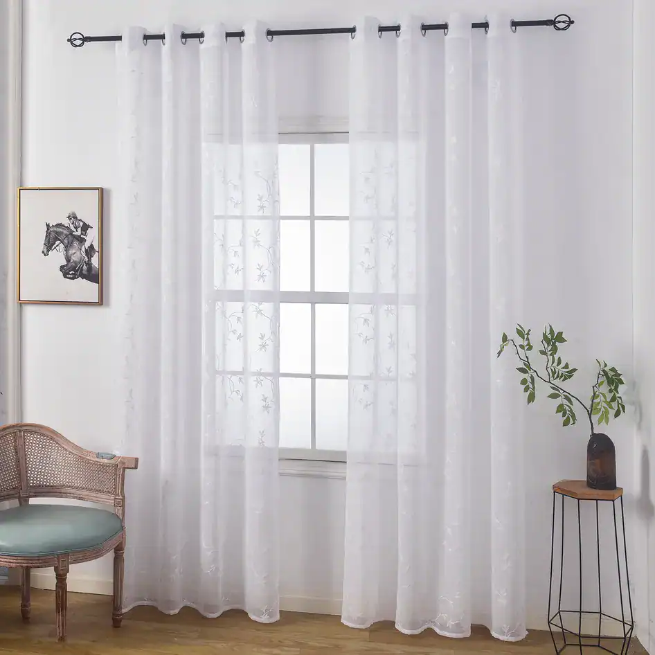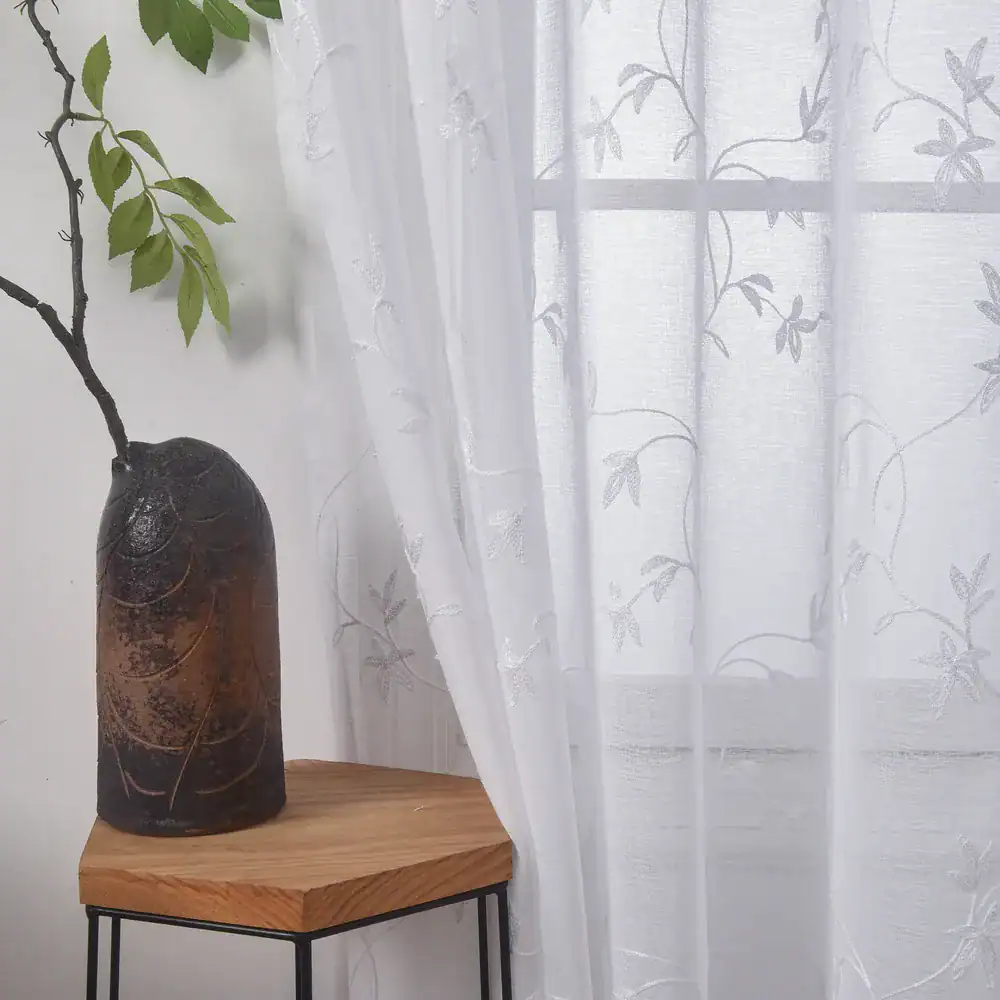 וילון רקום אמרלד – לבן