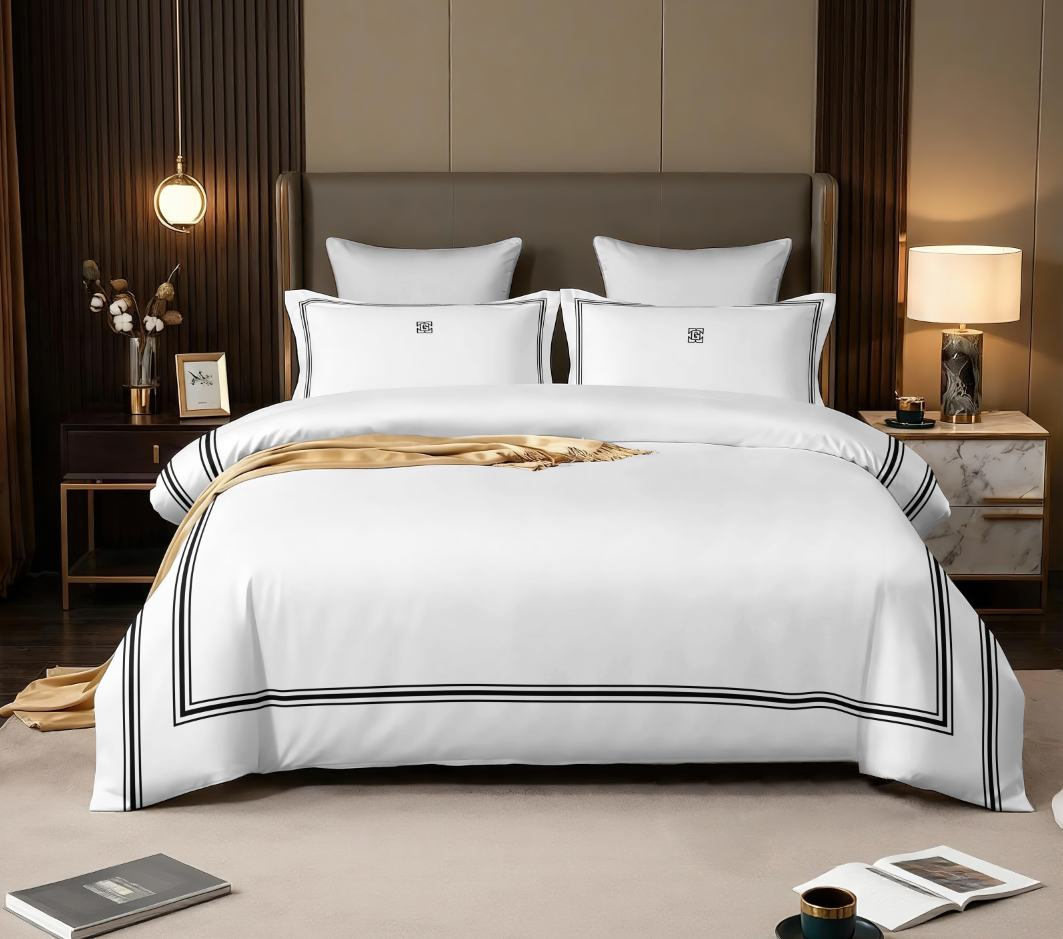 סט מצעים כותנה סרוקה 100 אחוז | דגם אטלנטה | שחור לבן