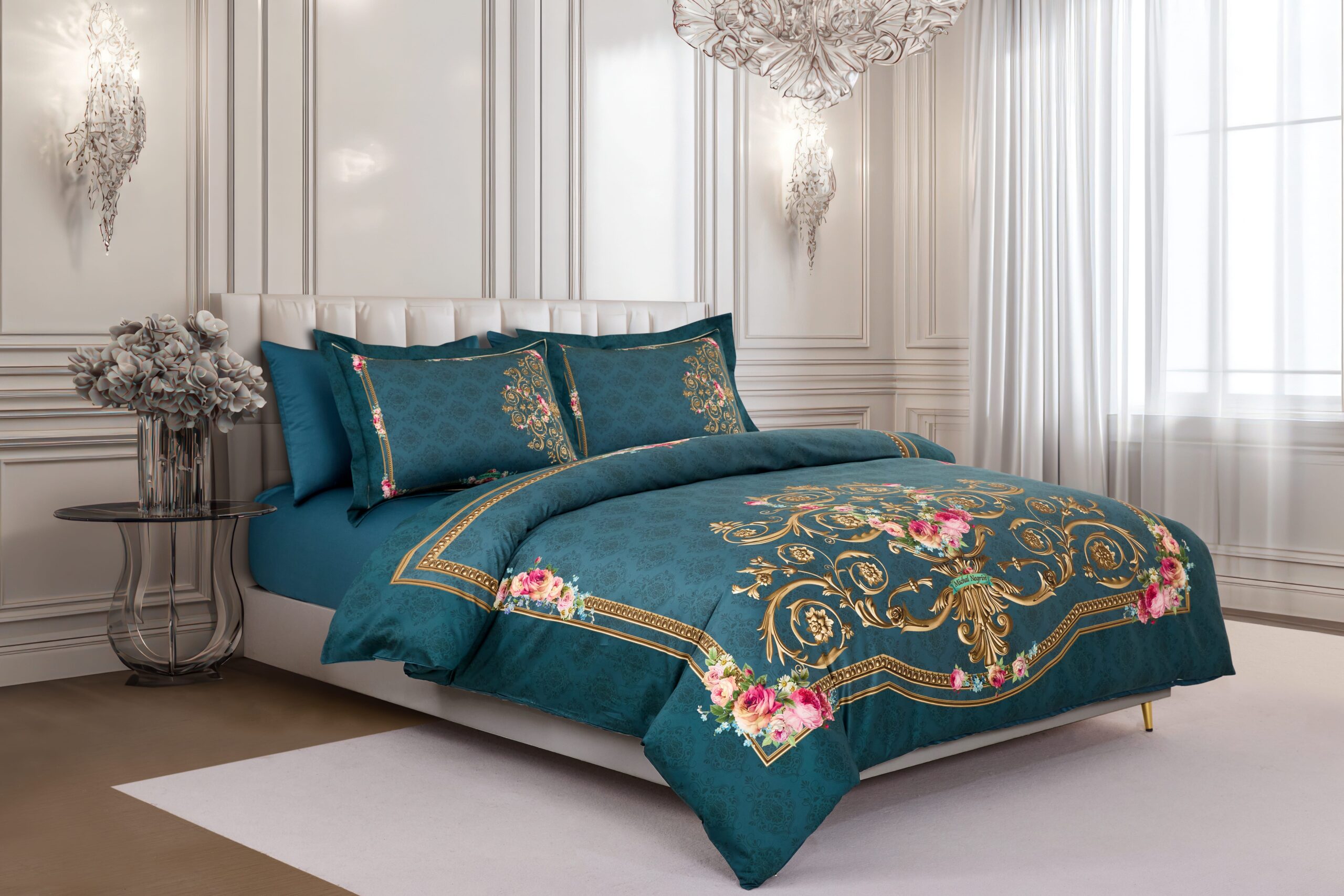 מערכת מצעים עשירה ויוקרתית מבית אמיטקס בעיצובה של המעצבת מיכל נגרין. עיצוב הסט ושילובי הצבעים קסומים ורומנטיים. הדוגמה העדינה המשלבת שושנים ומוטיבים תחרתיים מלכותיים בסגנון הייחודי למעצבת, היא יצירת אומנות אשר שואפת להעניק תחושה של רכות והרמוניה. עיצובו הייחודי של הסט מודפס על גבי בד 100% כותנה סאטן איכותי במיוחד ובצפיפות חוטים גבוהה
