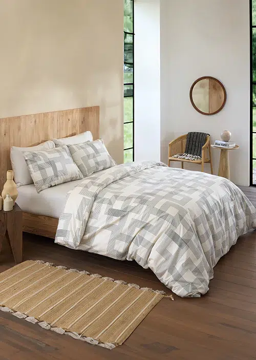 סט מצעים בהירים, 100 אחוז כותנה, בצבע אפרפר
